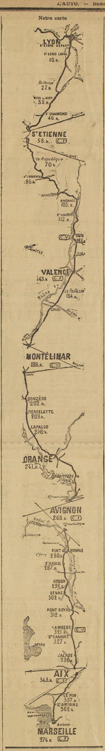 De renners reden door de nacht, met karige verlichting en grindwegen. In de eerste rit lag de Col du Pin-Bouchain op de route, in de tweede rit de Col de la République. Aan controleposten stempelden officials de kaartjes af. Jean Fischer werd beboet voor het volgen van een auto.