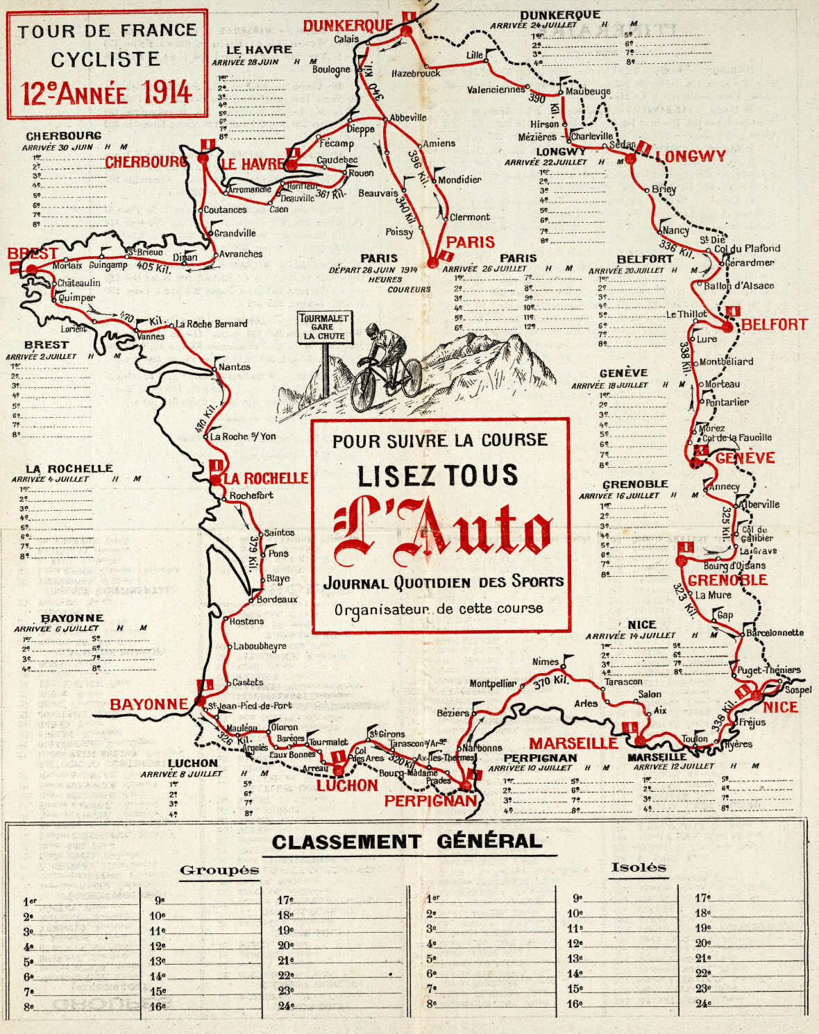 Wist je over de laatste Tour de France vóór de eerste Wereldoorlog?