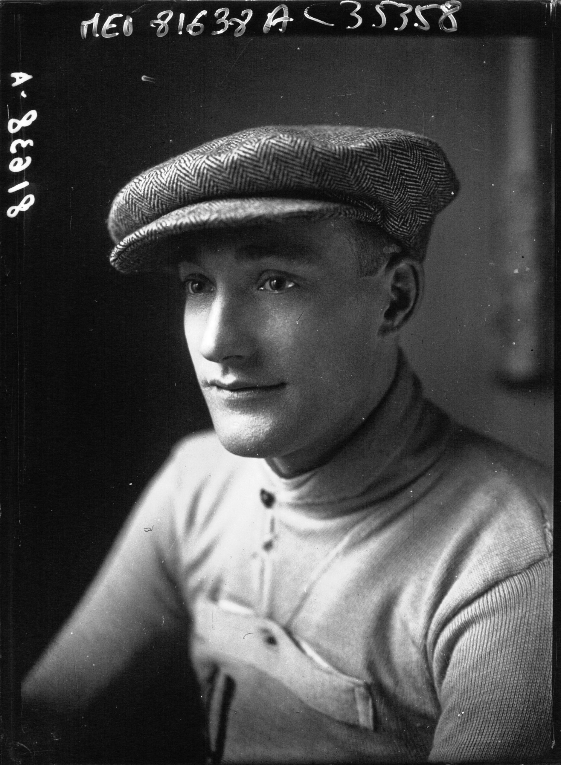 Omschrijving: De beroemde Franse wielrenner Lucien Petit-Breton, onder andere winnaar van de Tour de France (1907 en 1908) en de eerste Milaan-San Remo (1907), op een wielerbaan zonder plaats of jaartal. [Lucien Petit-Breton is een pseudoniem van Lucien Georges Mazan, 1882-1917]