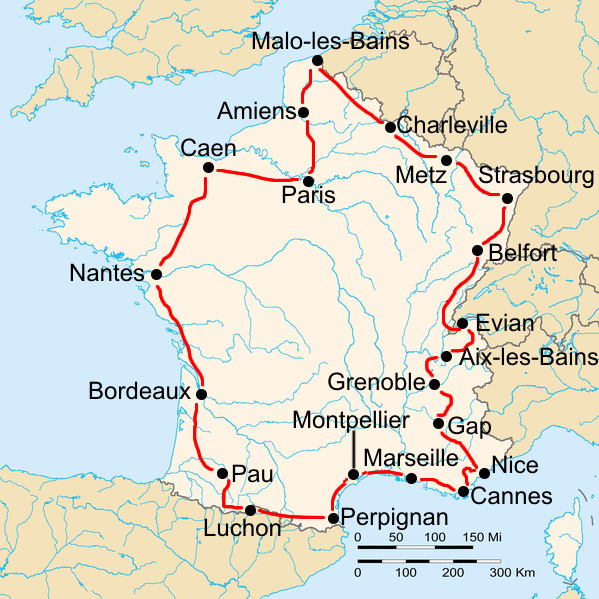 derivative work: EdgeNavidad (talk) | France_blank.png Route of the 1932 Tour de France, starting and finishing in Paris.